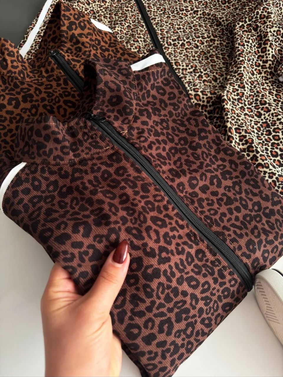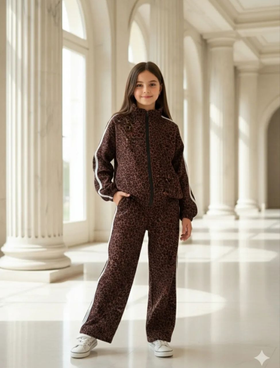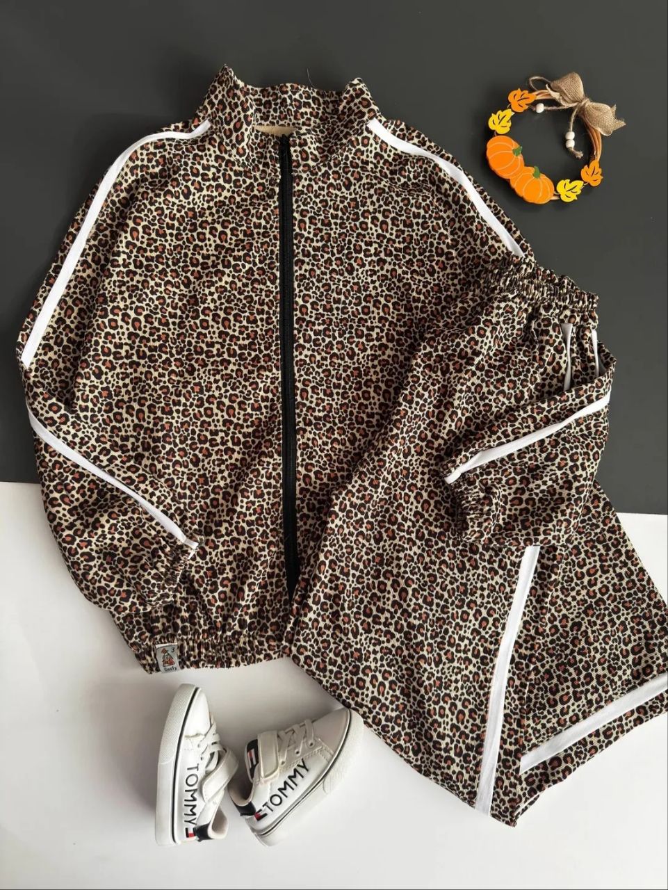سه تکه سویشرت تاپ شلوار دخترانه پلنگی، مناسب ۲ تا ۷ سال
