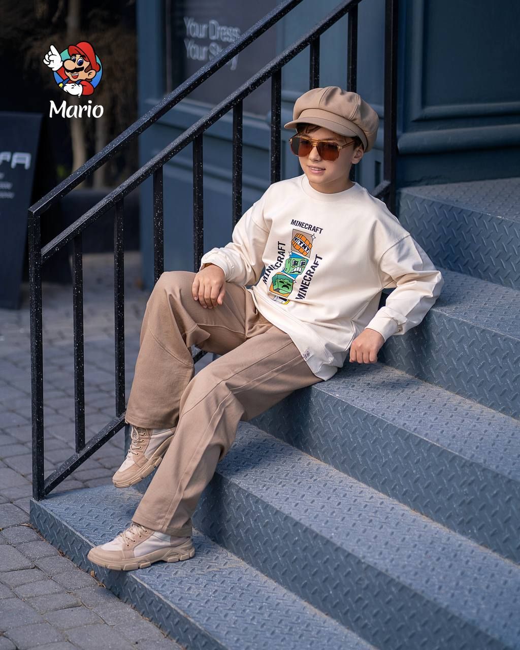 بلوز شلوار پسرانه، بلوز دورس پنبه و شلوار کتان گرم بالا سنگ شور شده، طرح ماینکرافت، 3 تا 13 سال