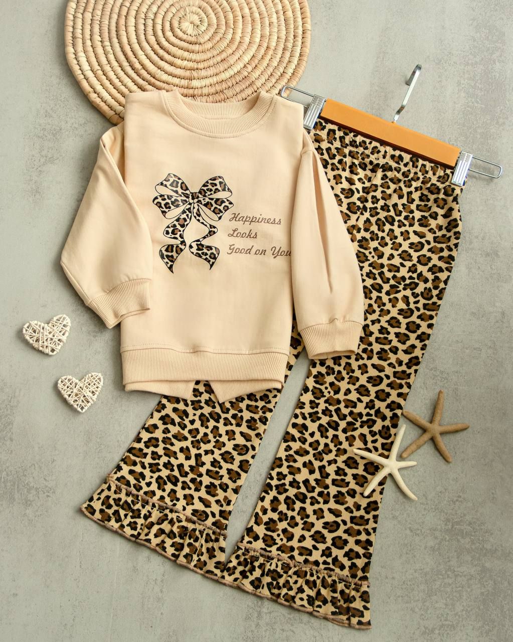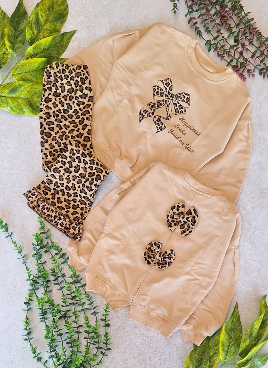 بلوز شلوار دخترانه، دورس پنبه سوپر نرم و راحت، مناسب 3 تا 14 سال، طرح پلنگی