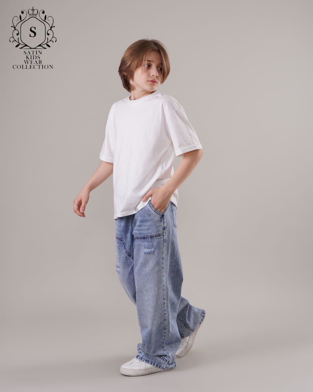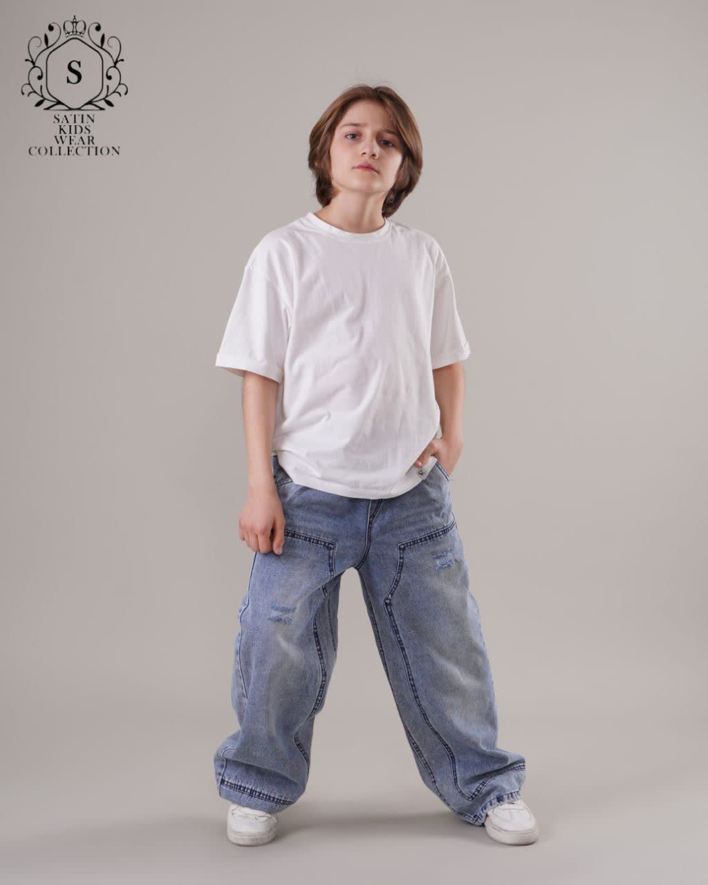 شلوار جین بگ اسپرت دخترانه و پسرانه، جین پنبه، مناسب 6 تا 14 سال