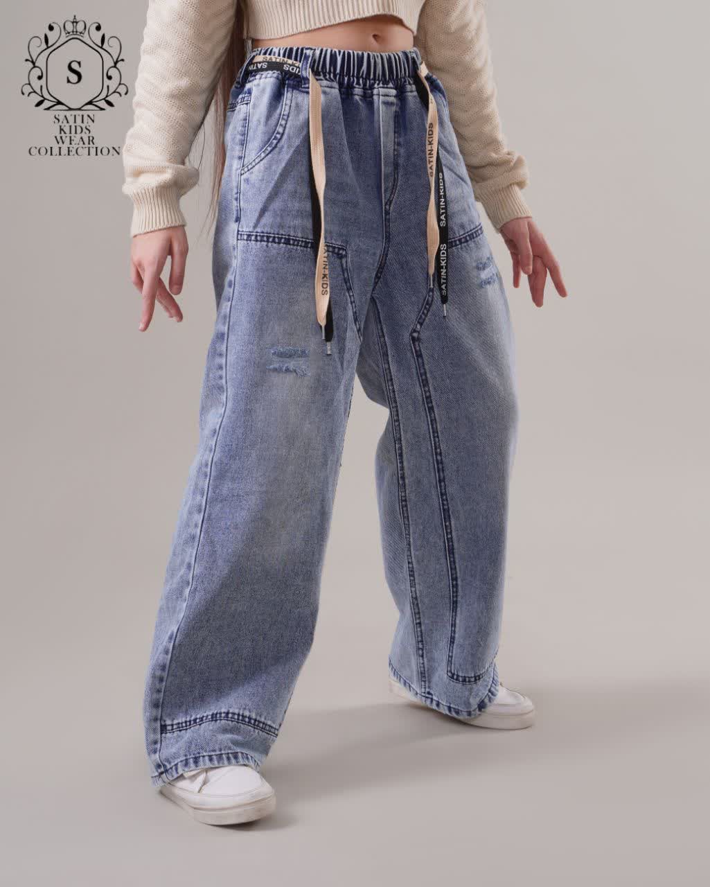 شلوار جین بگ کمرکش ساره، نرم و با کیفیت، دخترانه و پسرانه