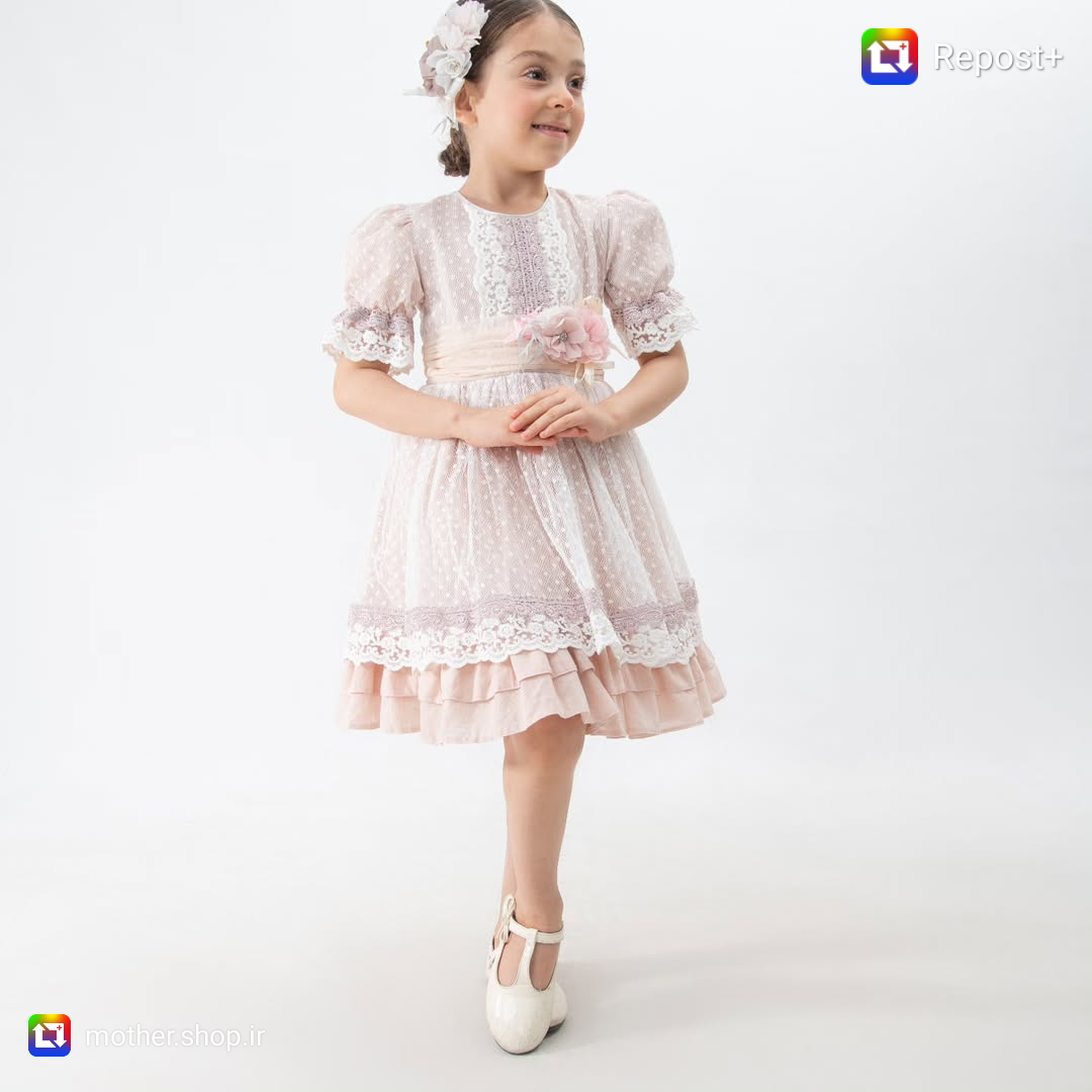 پیراهن تور مجلسی دخترانه، مدل اسپانیایی، مناسب 3 تا 12 سال
