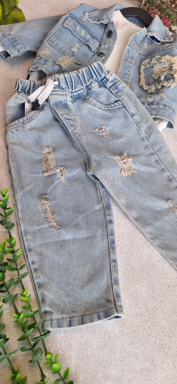 کت و شلوار جین زاپ دار، خیلی با کیفیت، شست درجه یک، مناسب 2 تا 5 سال